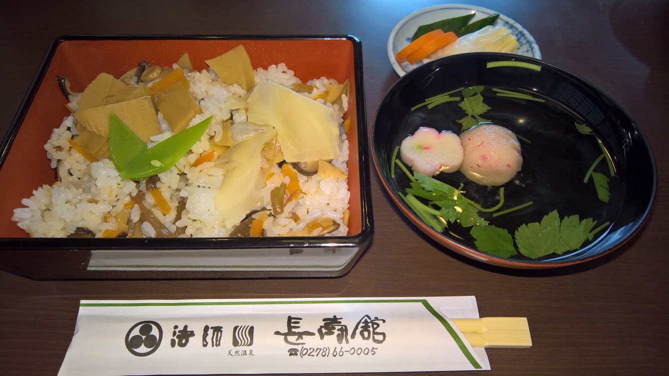 昼食休憩の予約をしておき、わたしは山菜ご飯にした。