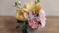 2月22日のモバイル@会社(朝) favorite 2022.02.23 テザリングは、接続に15分もかかった。「PYON’S BLOG」に6記事投稿した。 サブバッグに入っていたのは、奥からフラワーアレンジメントを入れてネイルサロンに持ち運んだ紙袋、ノートパソコン、日記帳、左側にキャメル色の手帳(以上2つはブログの記事を書くための資料)、青いポーチ(スマートフォン用のケーブル等が入っている)、中央にペットボトル、右側にお花を挿した容器であった。